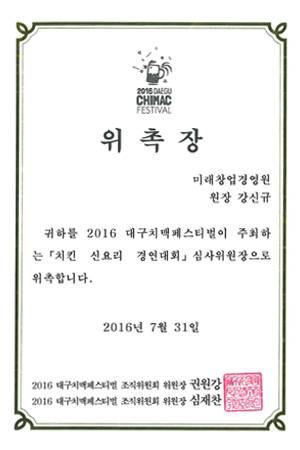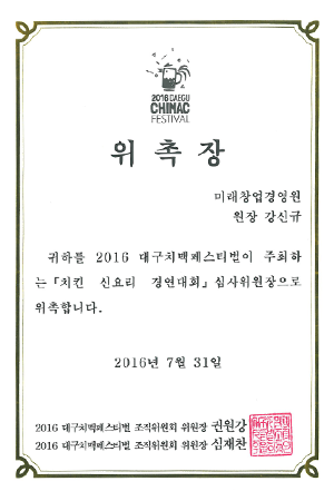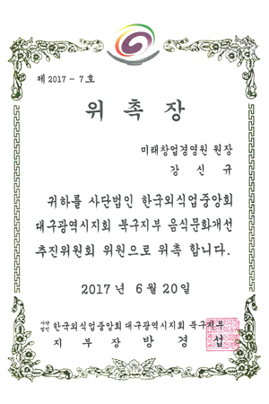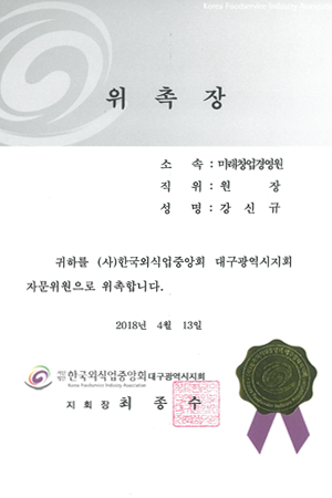 • (사)한국외식업중앙회 대구광역시지회 자문위원