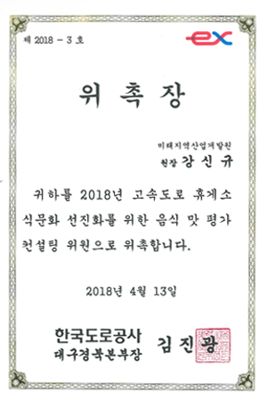 • 한국도로공사 음식 맛 평가 컨설팅 위원